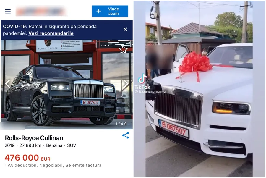 Rolls Royce-ul de +350.000 de euro s-a „transformat” peste noapte. Sursă foto: captură anunț autovit.ro / TikTok