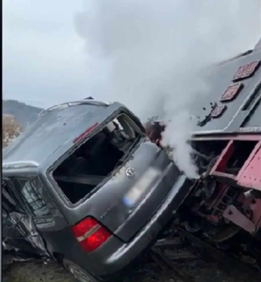 ULTIMA ORĂ! S-a răsturnat Mocăniţa, după un impact violent cu o maşină. Şoferul a intrat direct în locomotivă