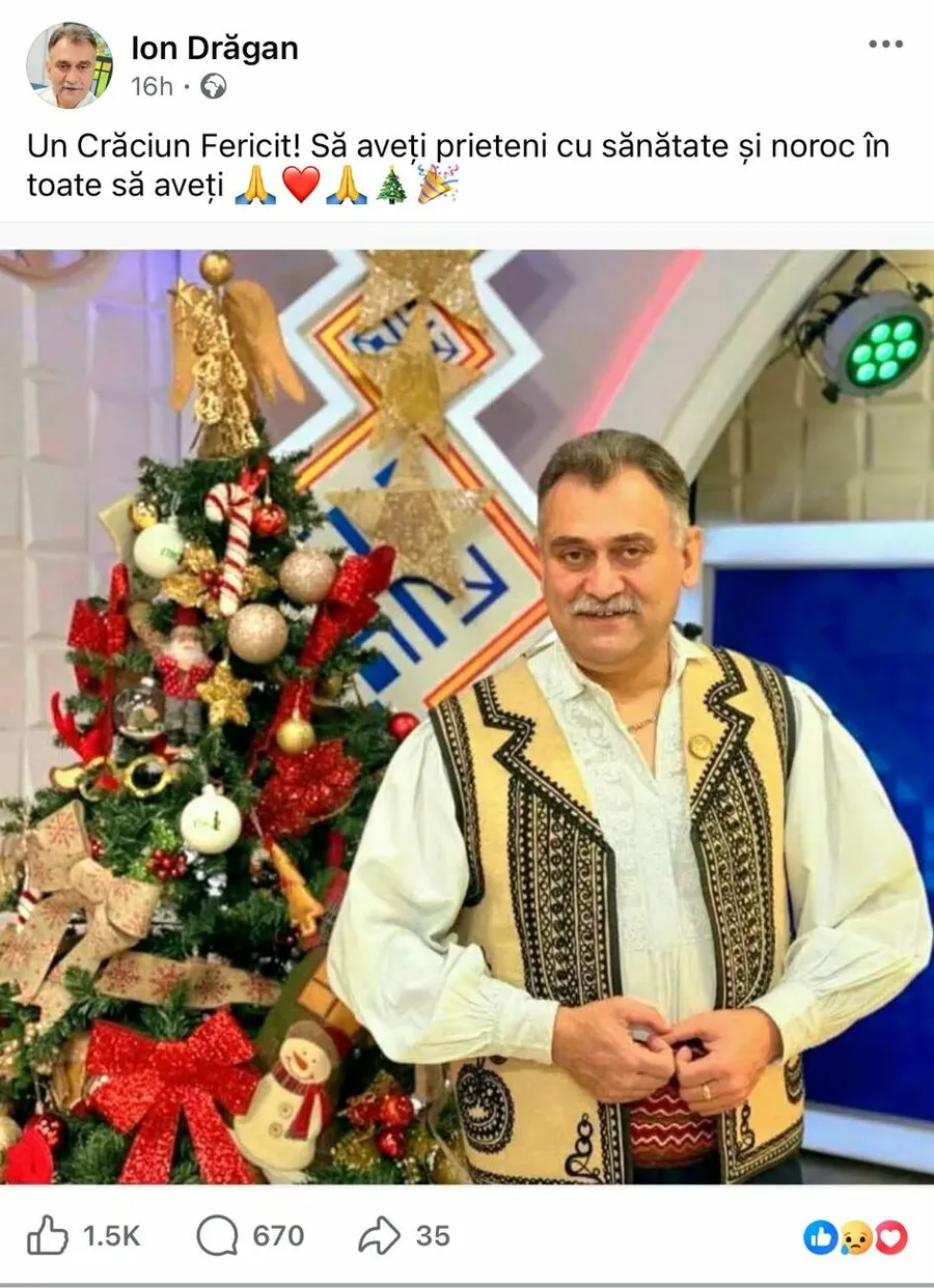 „Un Crăciun Fericit! Să aveți prieteni cu sănătate și noroc în toate să aveți”, este ultimul mesaj transmis de Ion Drăgan pe pagina sa de Facebook, înainte de tragedie.