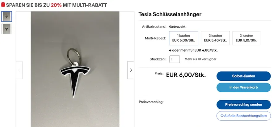Brelocul cu sigla Tesla, vândut de adolescentul de 14 ani/ Sursa foto: Bild.de