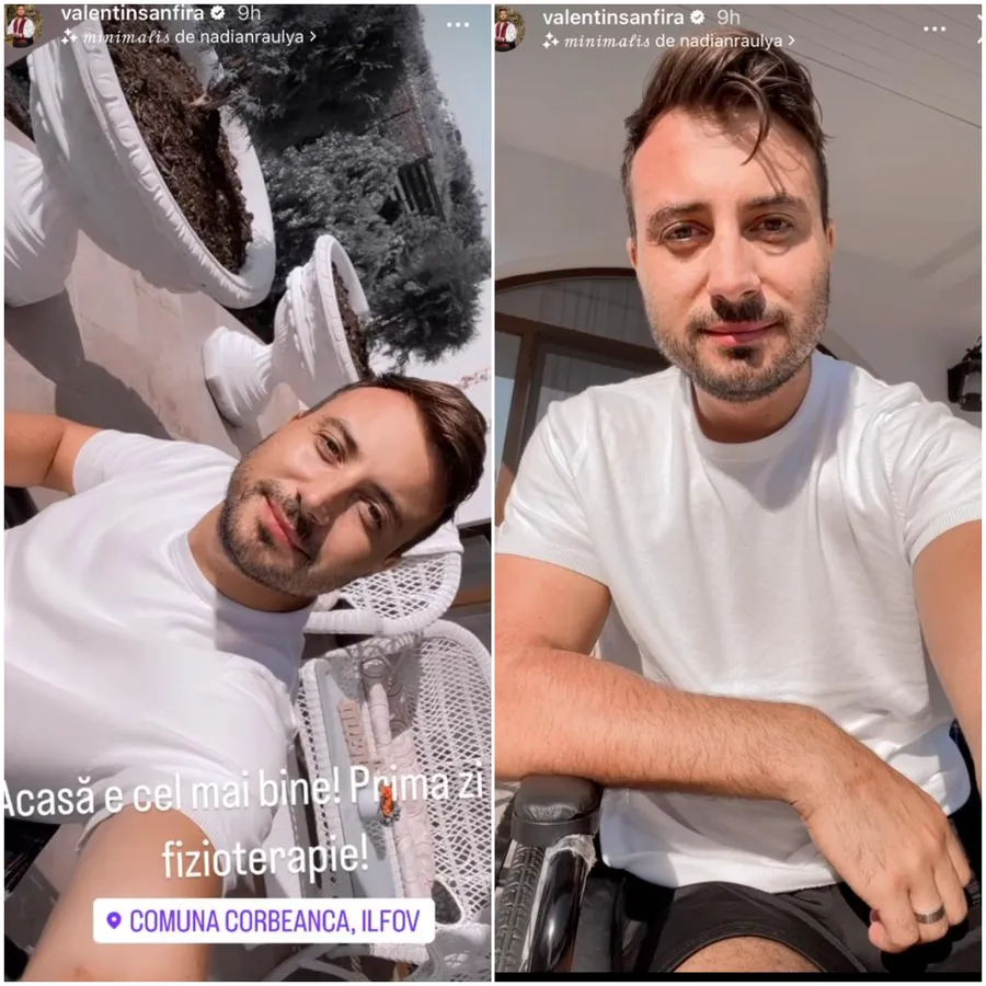 „Acasă e cel mai bine! Prima zi de fizioterapie”, a scris Valentin Sanfira, în mediul online.