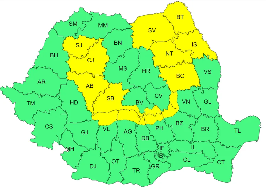 De asemenea, în acest context, Administrația Națională de Meteorologie a emis o avertizare de tip cod galben de instabilitate atmosferică. Avertizarea este valabilă în intervalul 9 august, ora 12 – 9 august, ora 21 și vizează cea mai mare parte a Moldovei, vestul și sud-vestul Transilvaniei.