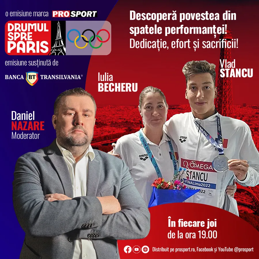 Emisiunea Drumul spre Paris va fi difuzată în fiecare joi, de la ora 19.00, pe site-ul ProSport.ro și pe canalul de YouTube.