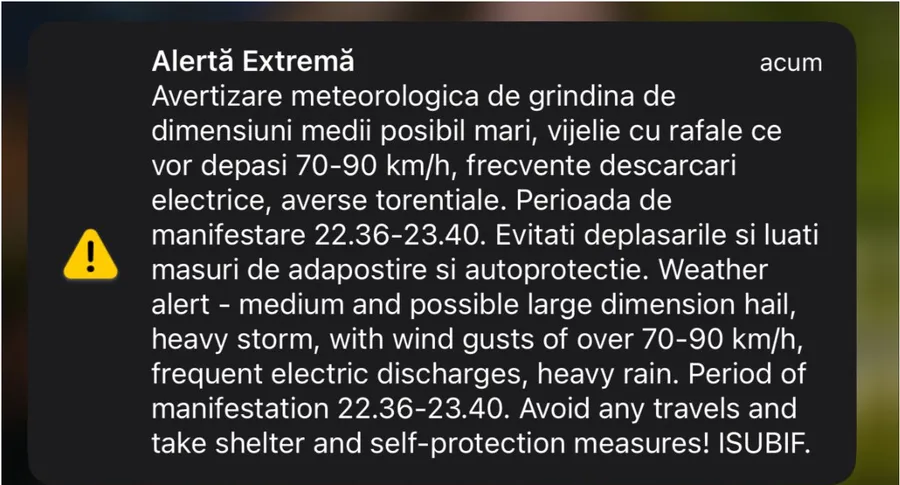 Ro-Alert a emis ALERTĂ EXTREMĂ