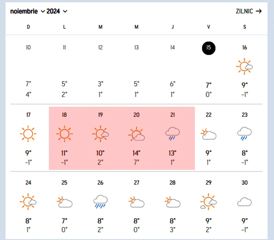 După o săptămână cu maxime foarte mici, urmează o perioadă mai călduroasă, potrivit meteorologilor Accuweather. În București, temperaturile vor depăși borna de 10 grade timp de 4 zile consecutive, începând de luni, 18 noiembrie 2024. În această zi, termometrele vor arăta maxime de 11 grade Celsius.
